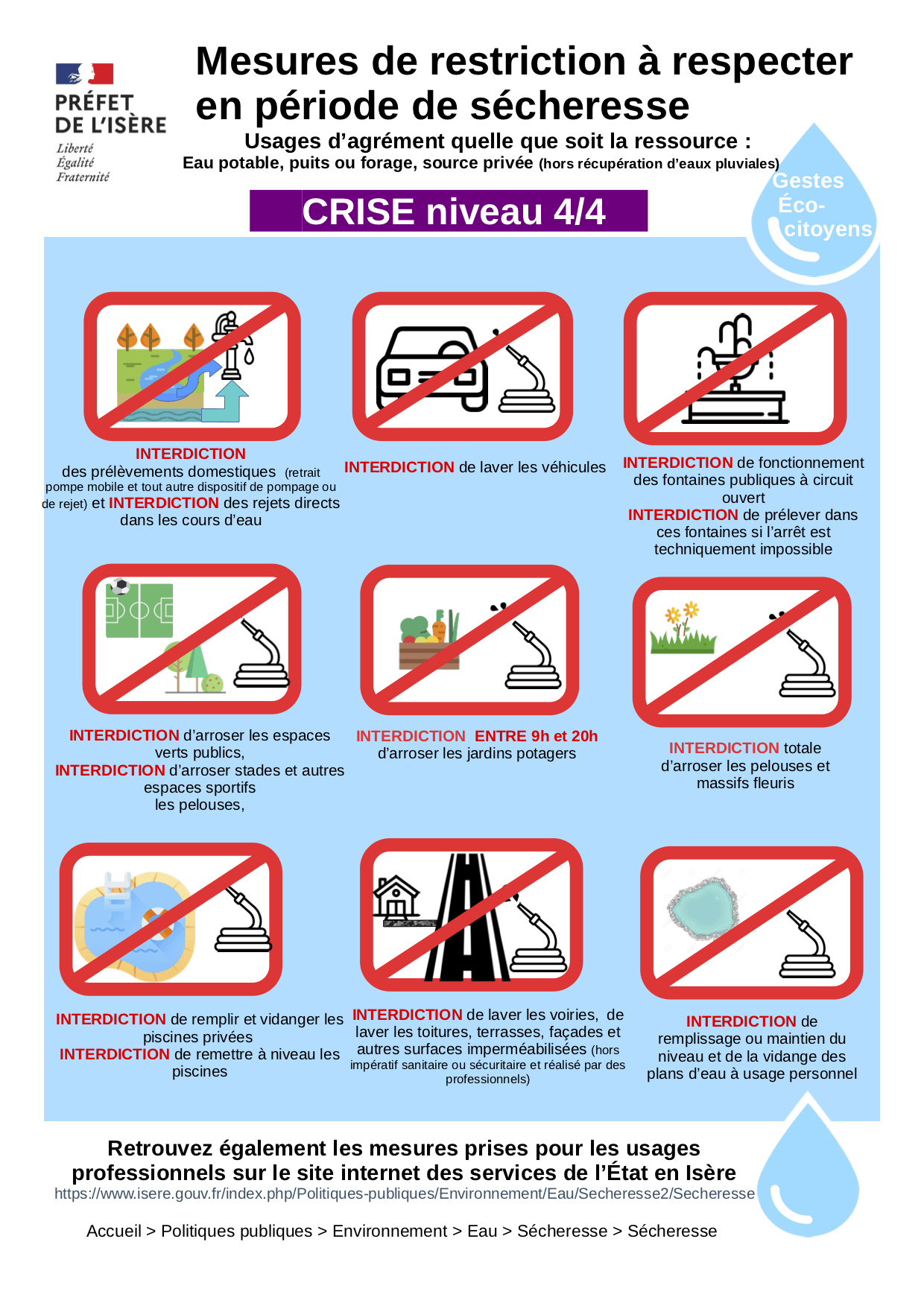 La municipalité vous rappelle que ces restrictions incluent l'interdiction de prélever de l'eau à la fontaine de la place Gilioli!