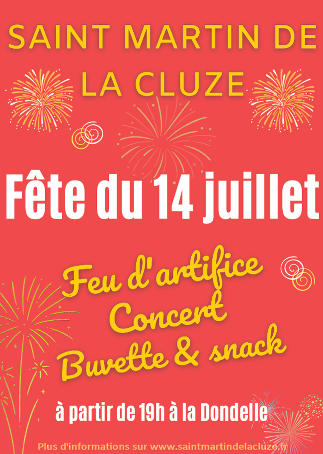 Venez célébrer la Fête Nationale! à partir de 19h à la Dondelle : Petite restauration ( réservation paëlla au 06 31 67 86 41 ou 07 87 76 91 99) ,Buvette, DJ, Feu d'artifice à 22h30